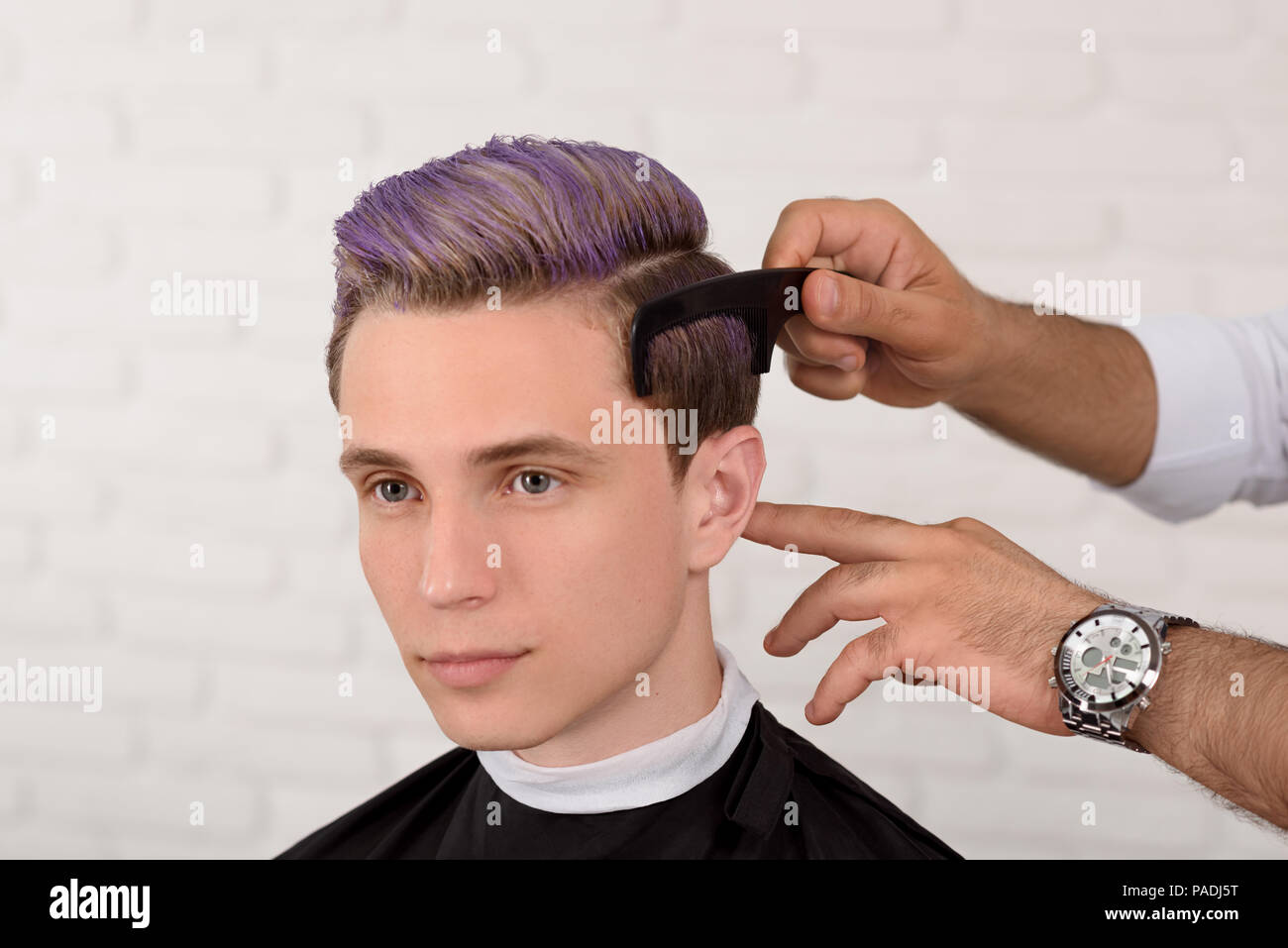 Junge Mit Getonten In Violett Von Professionellen Friseur Haar